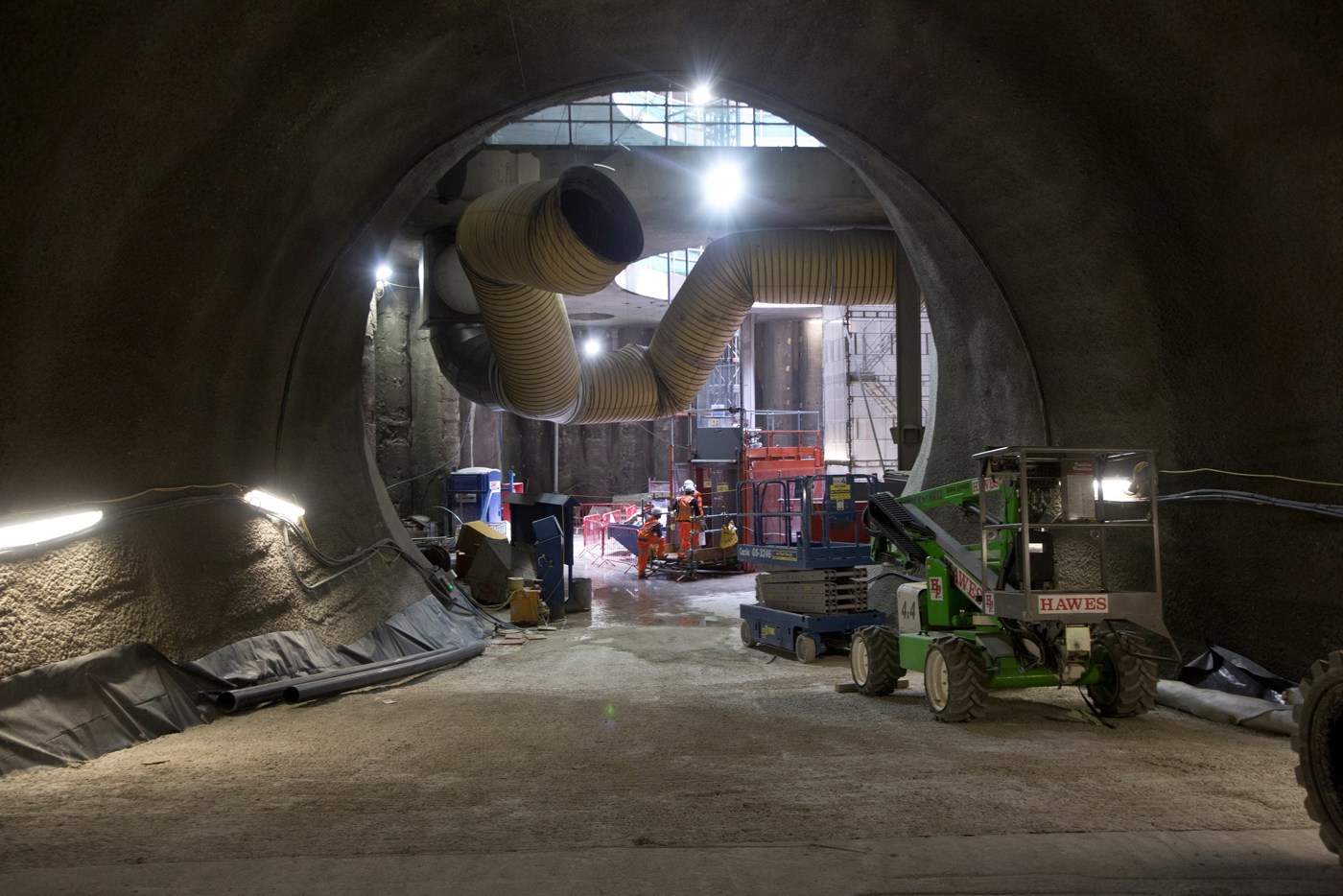 The tunnels and connecting passageways below Oxford Street are now complete. The structure of the Western ticket hall on Davies Street is also complete.