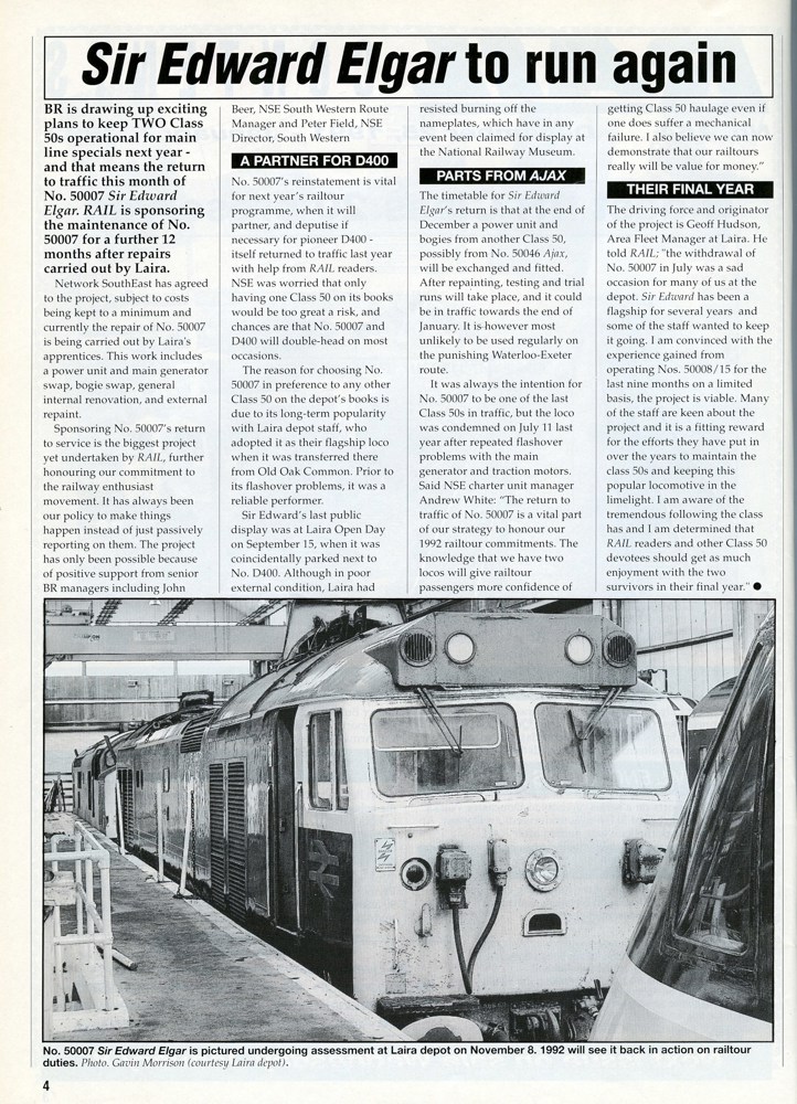 With 50007 Hercules changing hands, RAIL looks back to December 1991 when we reported our sponsorship of the locomotive's maintenance for 12 months.
