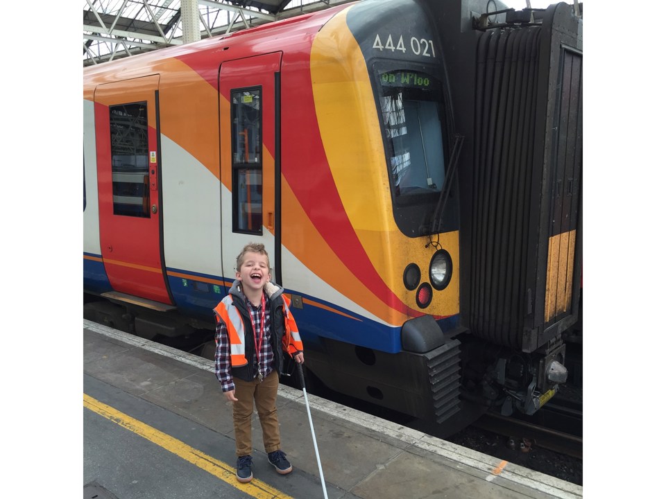 Malachi, who has a genetic condition called neurofibromatosis, and is blind, has two brain tumours and epilepsy, also used the train simulator at the ROC before returning to Waterloo first class.
