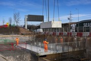 The structure, which is 84 metres long and 21 metres wide, was built on land next to the existing bridge and moved into place over the railway during a weekend blockade overnight on Saturday August 10. The operation was carried out using two 128-wheeled self-propelled transporters.