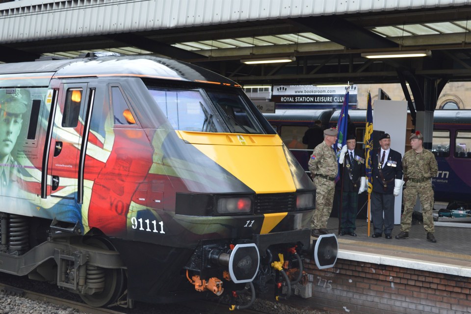 Designer Paul Gentleman and East Coast worked with five regiments along the East Coast Main Line to create the livery which carries images and stories from the Great War.