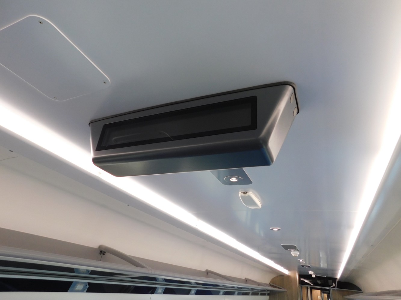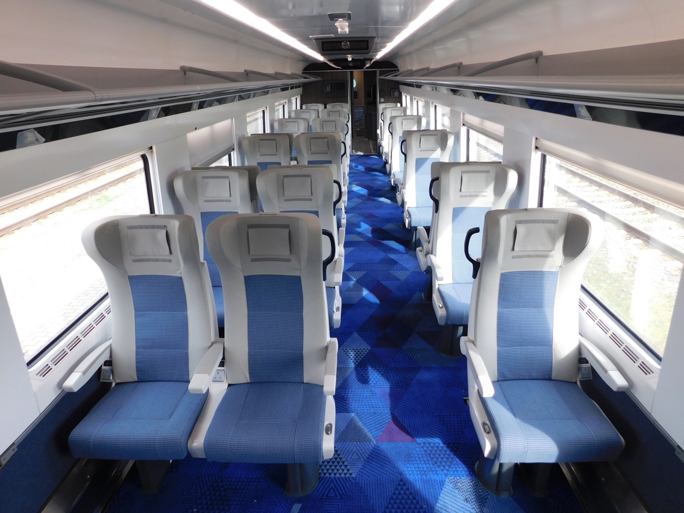 I was expecting a lot from the new rolling stock, but it seems like the same old mistakes have been made to minimise cost – pitiful luggage storage, overhead racks with such a roof curve above you’ll never get anything more than a rucksack up there, seats completely misaligned with windows and a colour palette clearly chosen by committee to be as bland and inoffensive as possible.