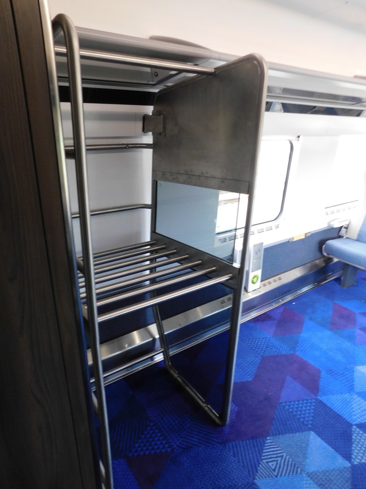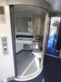 Next to the DTS is a TS, which is known as T2. This has 59 seats plus an area for bike and bulk storage (there are a further six tip-up seats, but these are not included in the overall seating figure). A trolley can be stowed here. T2 is fitted with a standard toilet. This coach weights 31.56 tonnes and is 22.2 metres long.