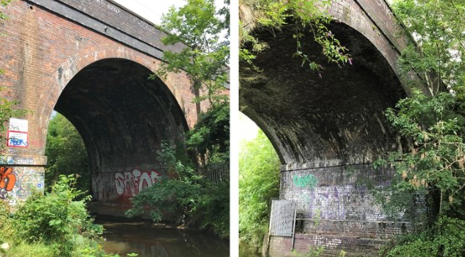 Network Rail has begun its inspection two red-brick structures over the River Cole that are showing signs of mild fatigue after 185 years’ use, and is replacing broken bricks and repointing the rest. The work will take until November.