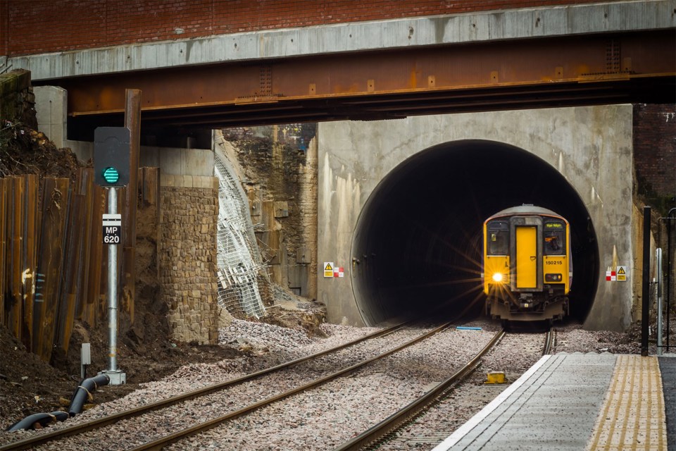 In the first week of February trains were able to travel through the rebuilt tunnel at the new maximum line speed of 75mph. Network Rail says that this will be raised to 100mph when the line is electrified.