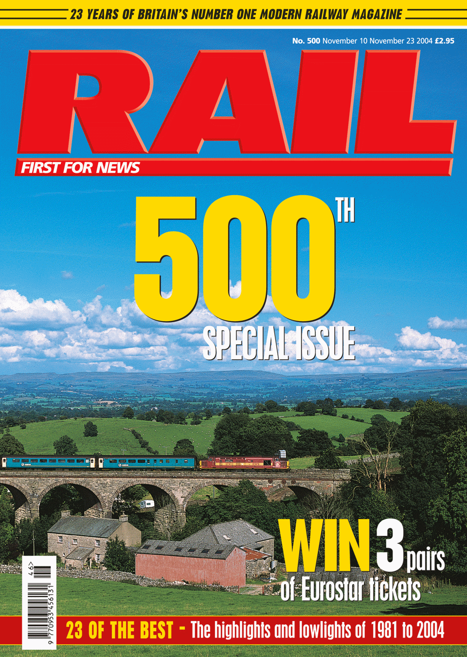 RAIL 500: RAIL celebrates with a fold-out cover showing the Settle-Carlisle Line. Then Secretary of State for Transport Alistair Darling says: “RAIL magazine never fails to deliver on its promise to be first for news, which is why it is so high on my ‘must-read’ list.”