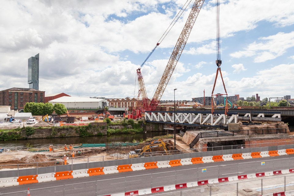 Network Rail engineers have begun restoring Stephenson’s Grade 1-listed bridge at Salford, as part of the Ordsall Chord work to build the first direct rail link between Manchester’s Piccadilly and Victoria stations.