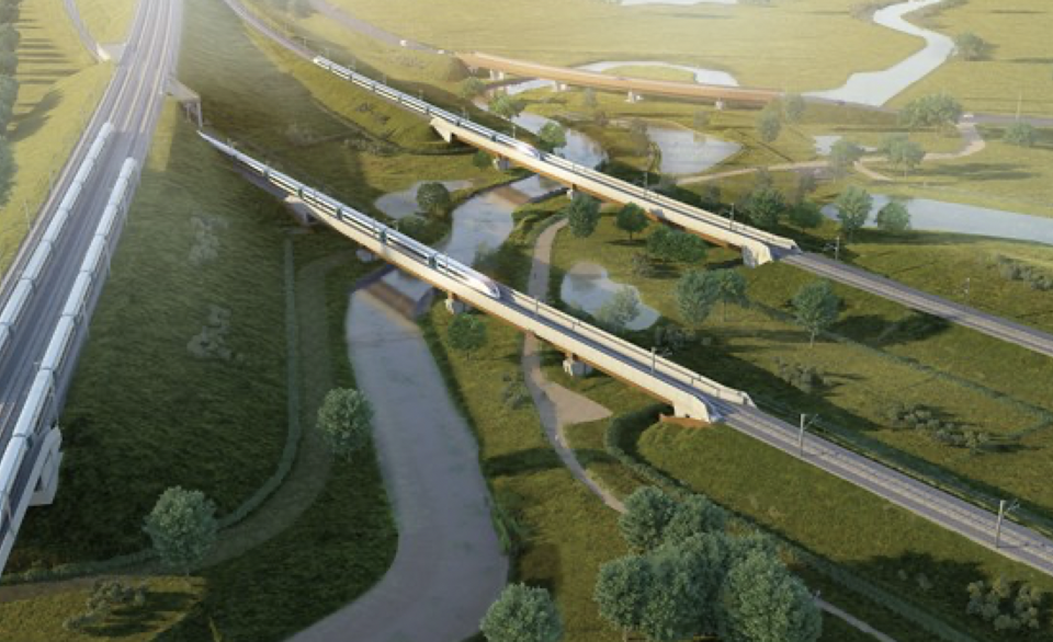 The two viaducts (River Cole West Viaduct and River Cole East Viaduct) will curve away from the northbound route to bring HS2 passengers into Birmingham Curzon Street station.