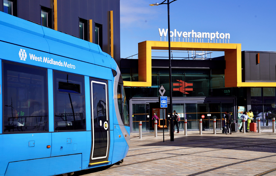 The £50 million extension, which is less than half a mile long, has trams start at Wolverhampton station, then run along the station approach road and stop at the city’s modern bus interchange in Pipers Row, before joining the tram network close to the current terminus at Wolverhampton St Georges.
