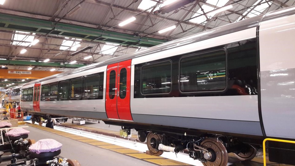 Construction of the first Class 720 Aventra vehicles for Greater Anglia is well under way, with bogies fitted to the first bodyshell and underframe.
