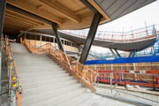 The images of the new station, designed to resemble a manta ray from above, features a timber structure roof and a glass façade. The timber roof has been built using 31 tonnes of steel beams, the four largest timber beams are 45 metres long and the roof is finished off with a zinc covering.