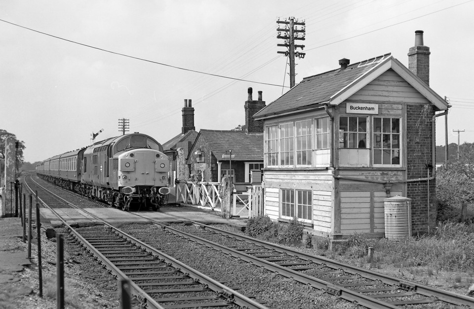Acle station has the only passing loop on the line between Brundall and Yarmouth. It features a small platform-mounted ex-Great Eastern signal box dating from when the more direct line opened in 1883. Following the closure of the former Midland & Great Northern line via Spalding, the passing loops were extended in 1960 to cater for the diverted Summer Saturday trains. At the same time, TCB working was introduced between Brundall and Breydon Junction. This was extended to Yarmouth after Breydon Junction signal box was abolished in 1977.