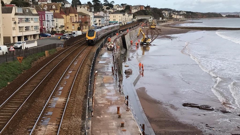 The concrete panels were erected on February 9, despite hazardous conditions caused by Storm Ciara. They will form part of the new structure designed to protect the railway from the sea.