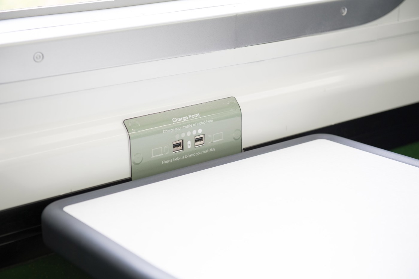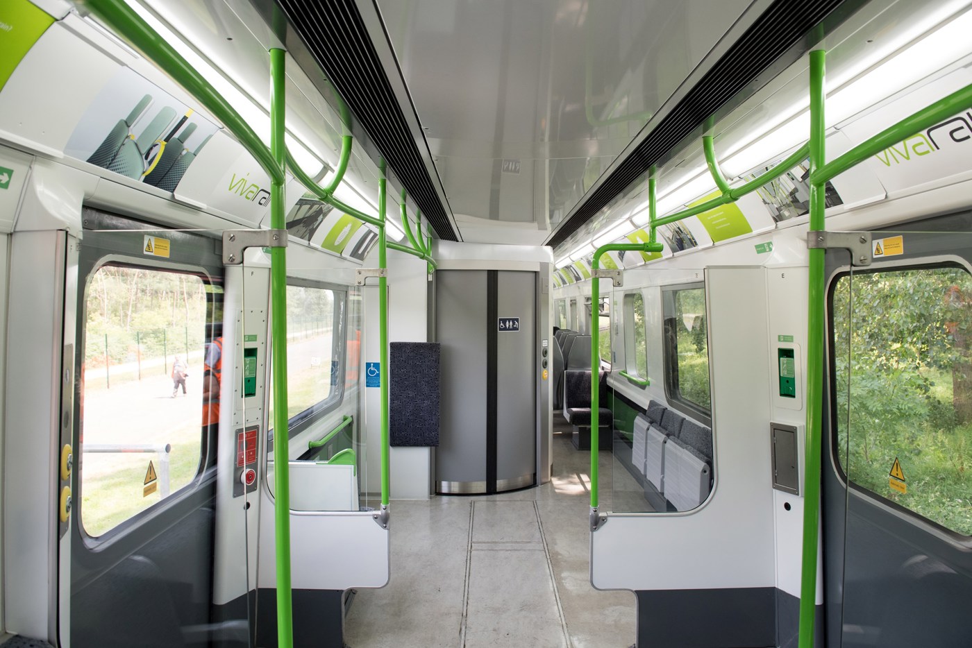 The centre-car of 230001 was fitted with various seats and tables, as well as charging points and a universal toilet. Any final decision on interiors will made by the customer that orders the trains.