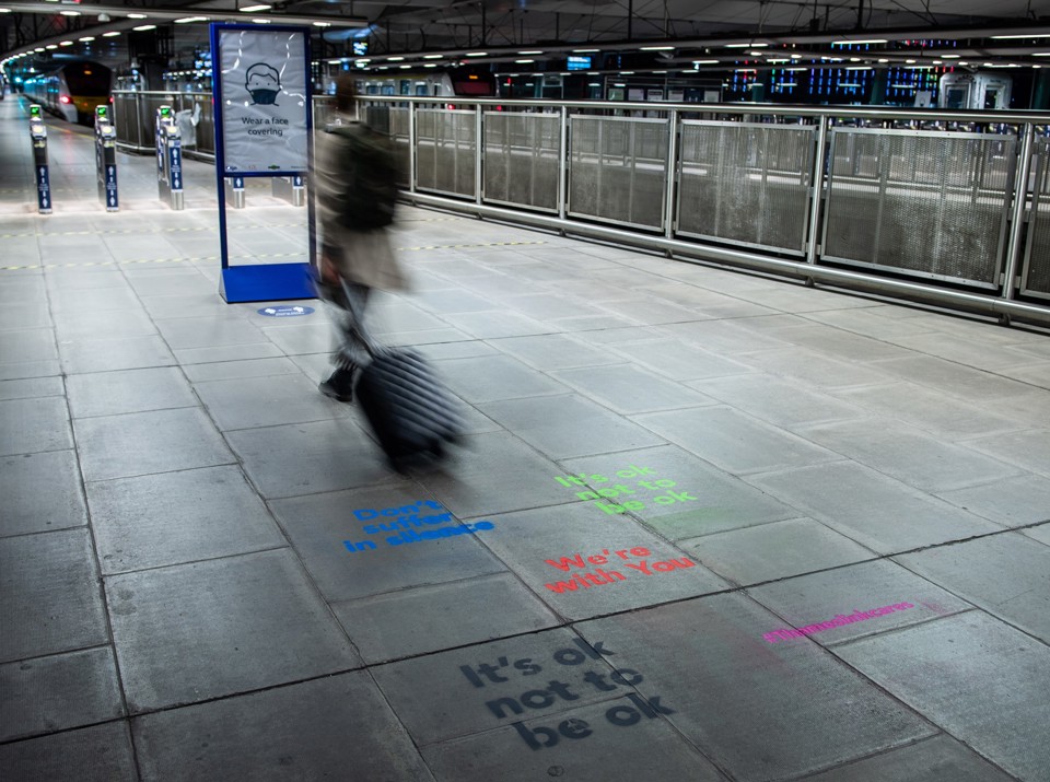 Launched today (annual World Suicide Prevention Day), the messages include: ‘It’s OK not to be OK, ‘We’re with You’ and ‘Don’t suffer in silence’. They have been applied at stations where GTR works with partners Samaritans, Network Rail and the British Transport Police to provide support.