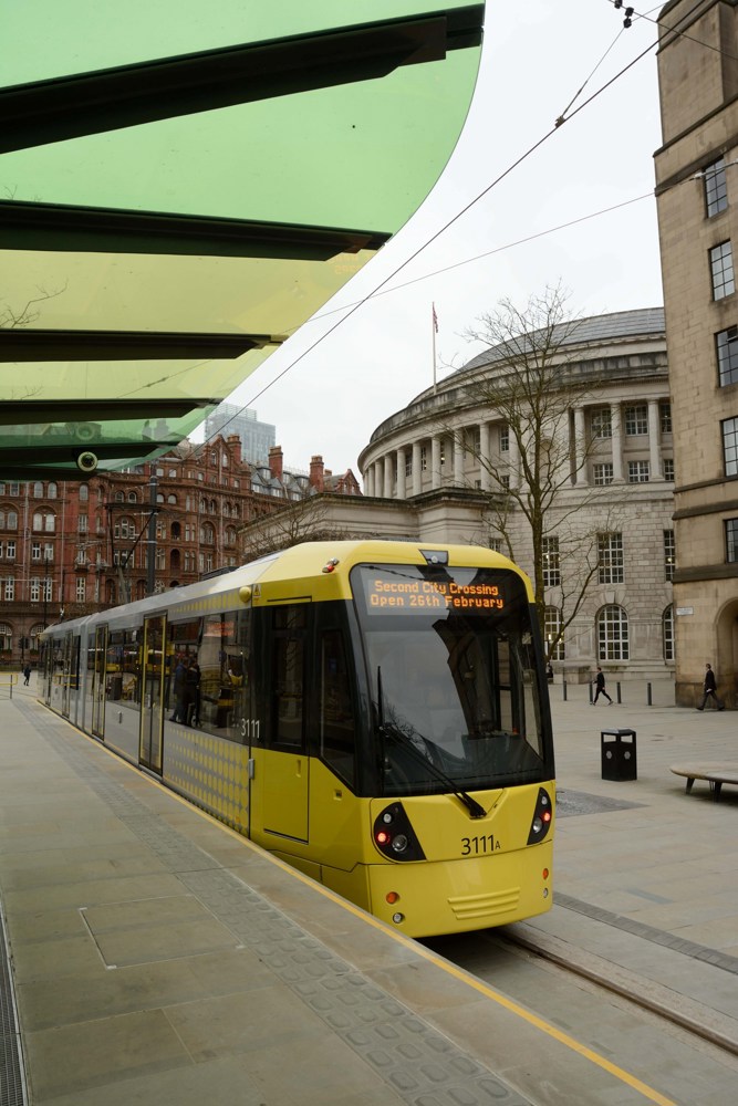 The 0.8-mile route runs from the Deansgate-Castlefield stop to a new stop at St Peter’s Square, along Cross Street to stops at Exchange Square and Victoria.
