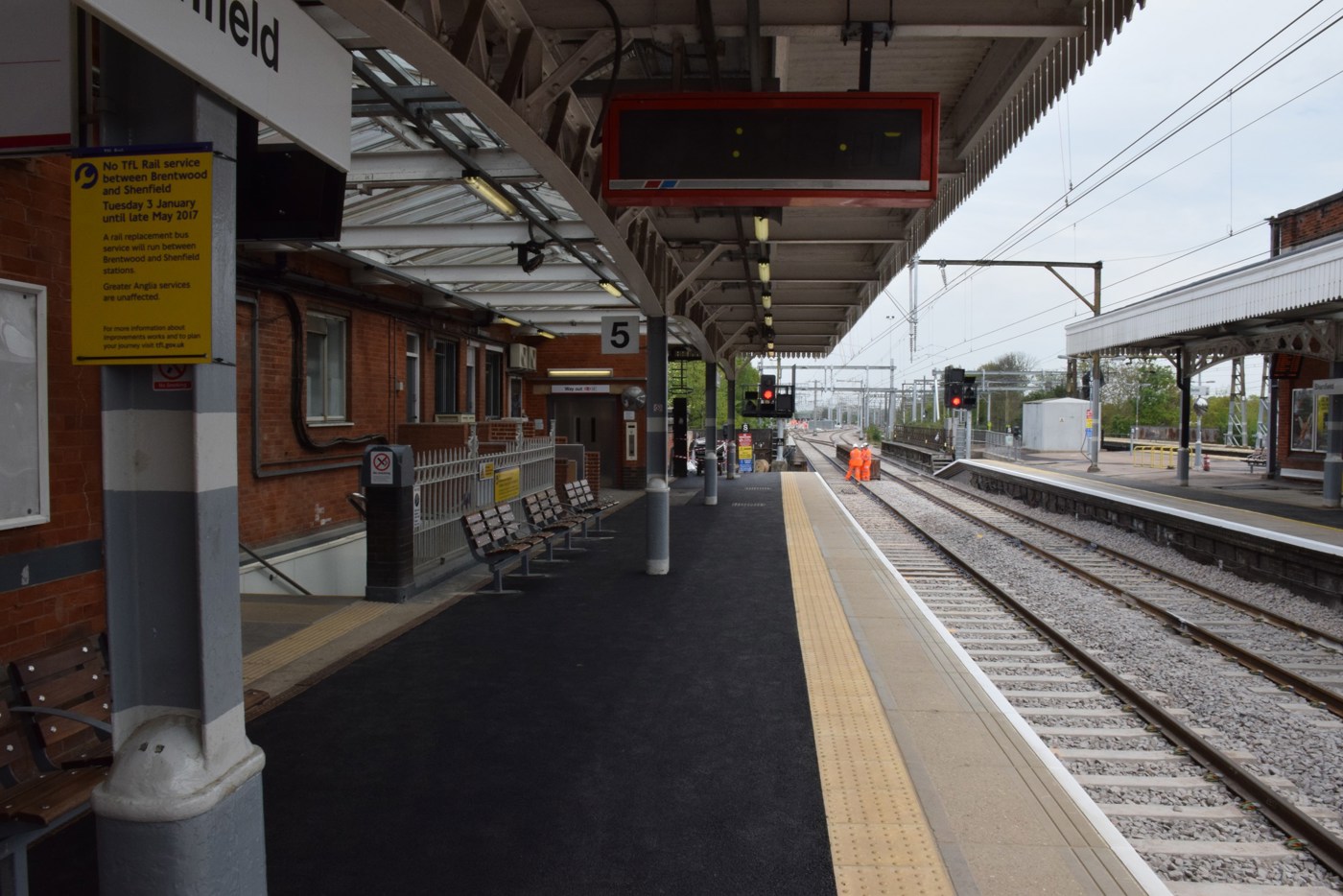 TfL Rail trains have started serving the station, having been running only as far as Brentwood since January, while Shenfield was being rebuilt, and a new platform installed.