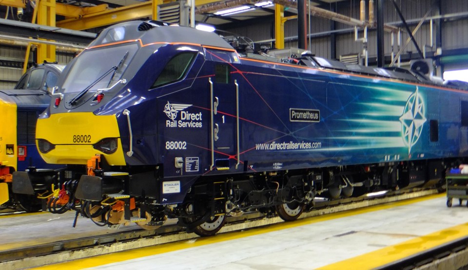 Stadler built the locomotive in Valencia. Leased by DRS from Beacon Rail, the ‘88s’ will have both 25kV electric and diesel modes and are a development of Direct Rail Services’ Class 68 platform.
