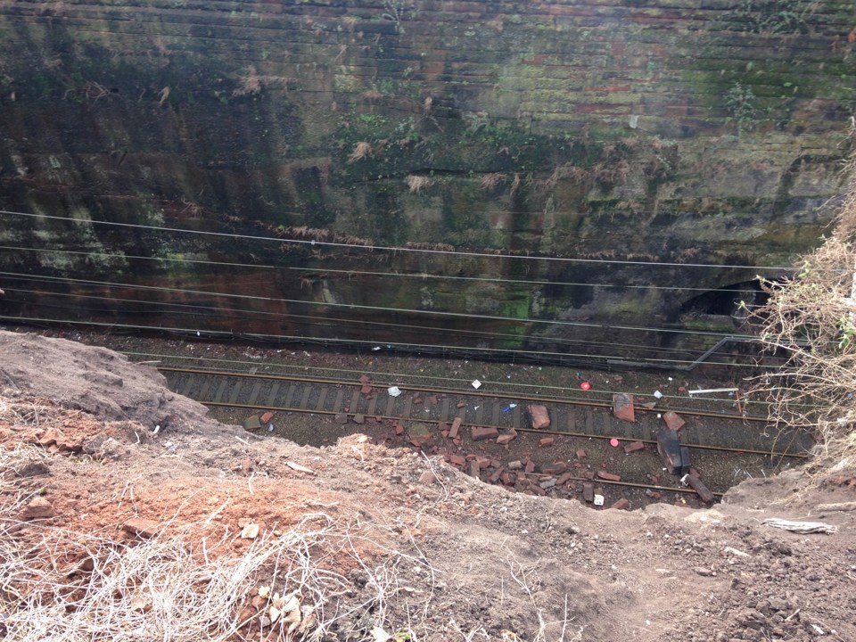 Doesn't network rail own the land either side of the cutting? They should have sorted this before now. Lack of investment? These walls look shoddy.