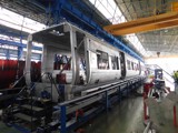He explains that the steel comes from Switzerland and then passes through the manufacturing stage, starting with the roof and then the underframe section. These two are then moved to the next stage, where they are married to the bodyside. At that point the steel cab, which is fabricated separately using a special jig, is attached. The project is a 24-hour operation using three shifts.