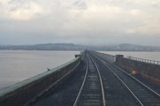 Around halfway across, a signal bring us to a stand, and we watch the ScotRail Class 170 climbs its way across the bridge, having left Dundee. As we get moving again, Robertson points out that due to the tide we cannot see the remains of the original Tay Bridge that collapsed in 1879.