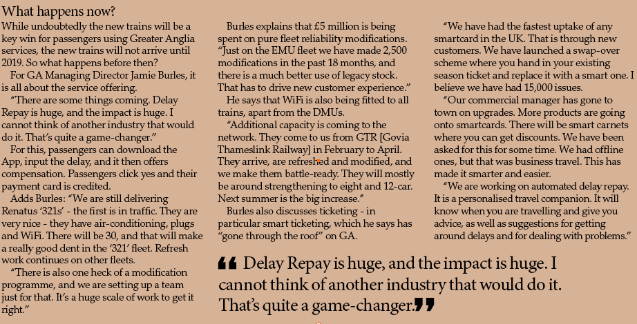 While campaigners want £476m of improvements - as well as the need for Ely North Junction to be remodelled to allow not only GA but also CrossCountry, East Midlands Trains, Govia Thameslink Railway and freight operators to improve their timetables and operations - these do not form part of the planned NR Anglian upgrades. This means that all the current planned improvements are based on existing infrastructure. Of course Burles would like more, but the bid was not (and could not) be built using ‘what ifs’.