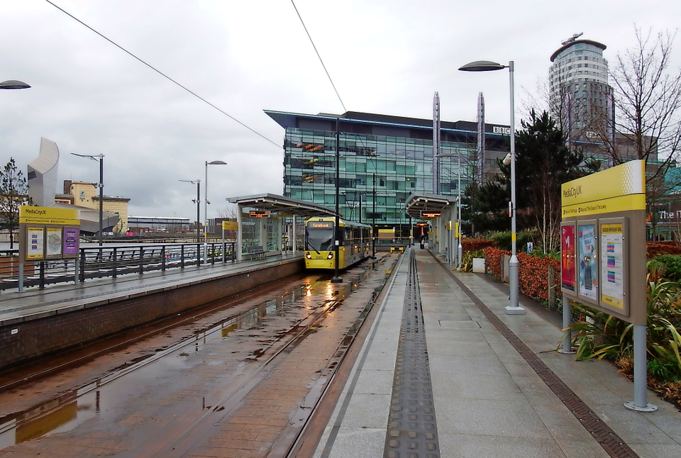 The MediaCityUK development was being constructed by the Peel Holdings Group, and would become the main northern headquarters of the BBC along with ITV and a number of other large media organisations. The development was designed to bring a host of media companies to one central area in Salford Quays, and the construction of the Metrolink line into the heart of the development would provide a high-quality direct transport link from Manchester to the MediaCityUK piazza.