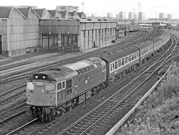 With the ScR’s own Type 4s ruled out, the Region had to opt for two Type 2s - one at each end of the train. BR’s National Traction Plan had reallocated all the Birmingham Railway Carriage & Wagon Company (BRCW) D5347 (Class 27) machines to Scotland by 1970. A combined 2,500bhp would be available from these 90mph locomotives.