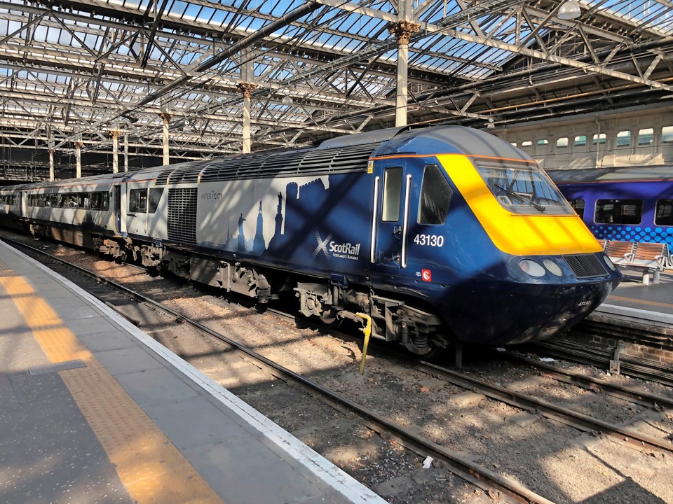 Arriving early at Dundee, we left 43130/140 to carry on to Aberdeen, while we returned to Stirling on a classic set (the 0942 Aberdeen-Glasgow Queen Street powered by 43168 leading with 43152 trailing). Both power cars were in the new Inter7City livery.