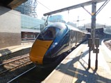 There is a speed restriction coming out of the terminus. We are on Platform 8, so that also requires crossing a number of tracks to reach the Down Fast. As we reach that, we pass 800003/004 which are being used for testing purposes.