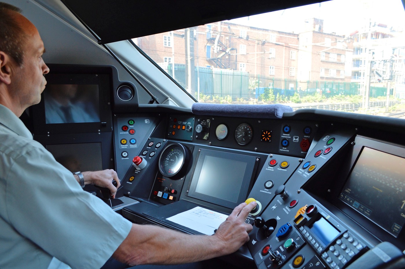 In the centre of the desk is a screen for European Train Control System (ETCS) equipment, although this is not yet fitted, and nor does Fortune know when that is likely.