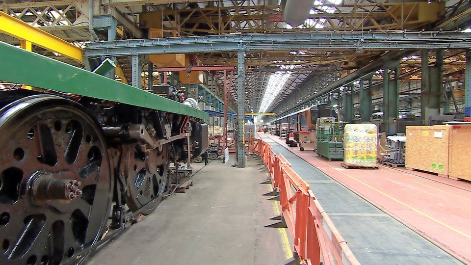 Canadian Pacific is a Merchant Navy class locomotive. It was built on the same site in 1941. It was manufactured partly by women, drafted in and hurriedly trained to replace men who had gone off to war.