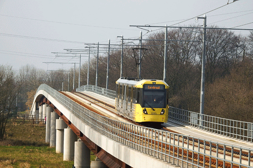 Building the £450 million route wasn’t a straightforward process. The chosen route required the installation of three major bridges, as well as construction of a new underpass on the approach to the terminus at Manchester Airport. The installation of two of these bridges, each weighing 580 tonnes, required weekend closures of the M60 and M56 motorways while they were positioned. The third bridge is an impressive 337 metre-long concrete and steel crossing of the River Mersey at Sale Water Park, through an Area of Special Biological Importance.