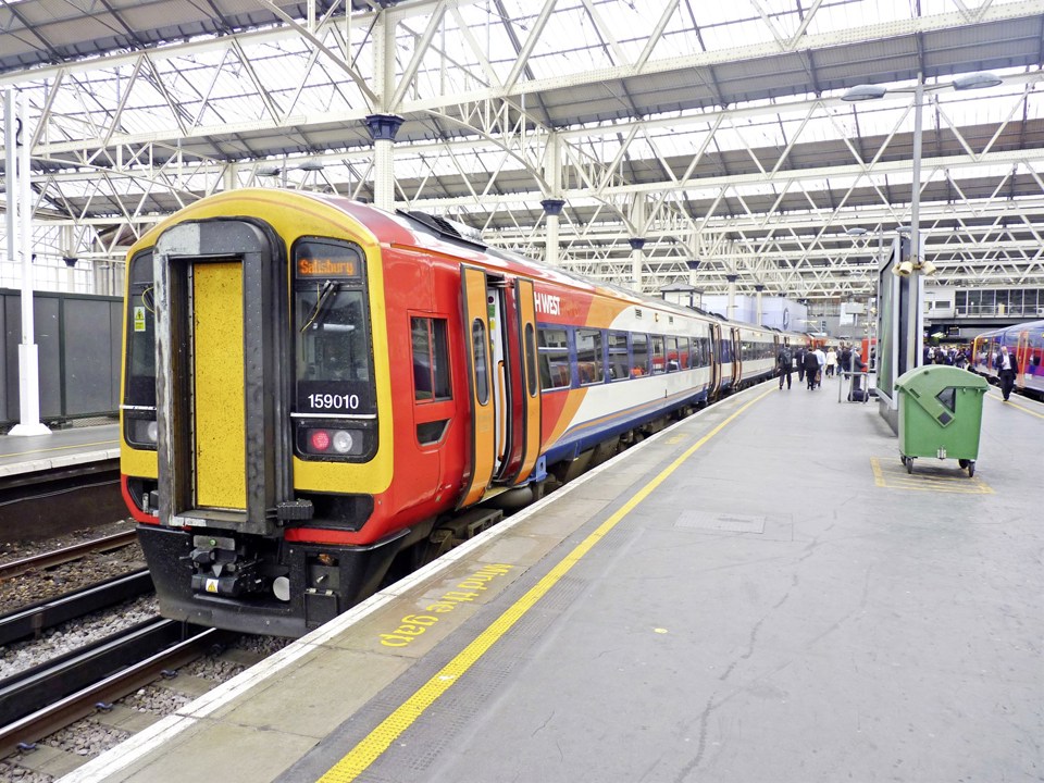 The trains used celebrate their 20th anniversary this year, and July 11 marked the 20th anniversary since the route converted to full DMU operation. The first trains entered traffic on March 22 1993, while the depot that maintains them (Salisbury) officially opened on June 11 1993. Initially 22 three-car Class 159s were used, but the fleet has grown through converting Class 158s - there are now 30 Class 159s.