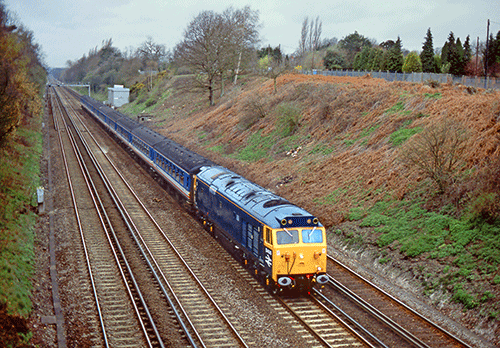 Just over 25 years ago, RAIL played an active part in persuading BR’s Network SouthEast (NSE) sector management to restore the locomotive ‘50’ into a version of its original BR blue livery, as applied when the locomotive was first rolled out of Vulcan Foundry’s workshops in Newton-le-Willows in June 1967.