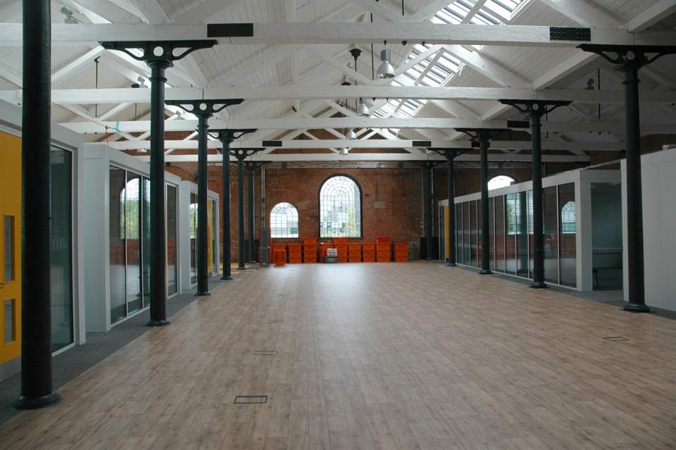 The enabling work started in February and March 2007 and involved securing the safety of the building. The buildings are Grade 2* listed, which means that nothing can be altered or removed without permission. In the roundhouse this meant that a ceiling could not be installed which would have hidden the wooden beams in the roof, as well as the crane over the turntable.